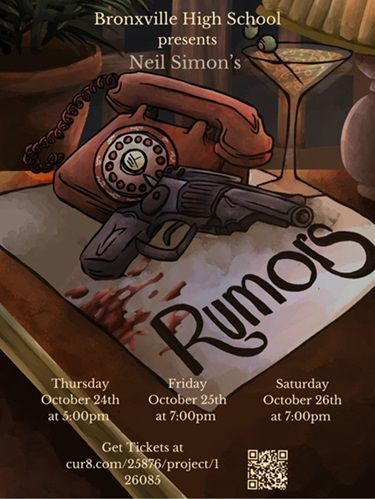 Oct. 23, 2024: This year's high school play will be "Rumors," one of Neil Simon's most popular stage plays of the 20th century. If you are looking for a laugh to kick off the fall season, the talented students of Bronxville have the ticket!