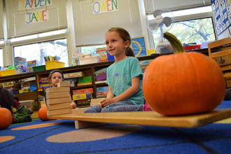 Pictured here: Bronxville Elementary School students learn different math, science, and language arts concepts through a number of hands-on activities with pumpkins.