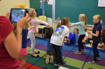 Pictured here: Bronxville Elementary School first-grade students acting out an Australian folktale on camera.
