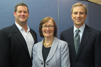 Pictured here (L to R): Retiring Bronxville school board trustees Tom Nichols, Denise Tormey, and David Brashear.