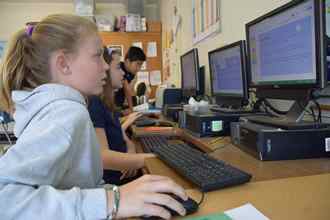 Pictured here: Fifth-graders at Bronxville Elementary School developing websites and creating public service announcements.