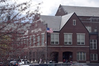 Pictured here: Bronxville Elementary School entrance, where many students are dropped off and picked up.