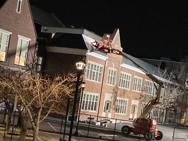 Jan. 27, 2021: Have you noticed a long crane with nighttime workers on the roof of the Bronxville Elementary School?