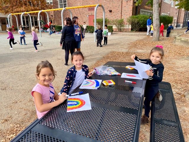 Pictured: Students enjoying the Elementary School Picnic tables. Photo courtesy of Bronxville School Foundation.
