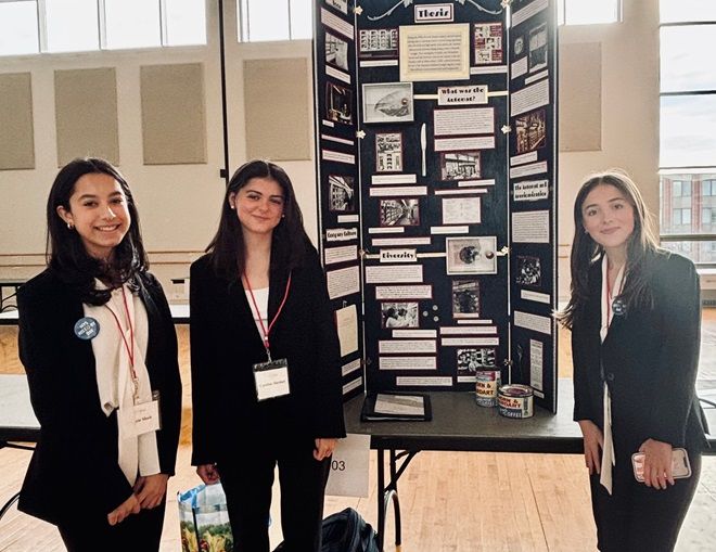 “They have worked so hard in creating their exhibit,” said social studies teacher Dana Landesman, who oversees the program. “The Horn and Hardart Automat was the perfect choice for their extensive research process examining Caroline’s great-grandfather’s restaurant, created in 1888, which was an innovative dining experience that brought together people of various socio-economic backgrounds throughout a period of hardships, including the Great Depression.”
