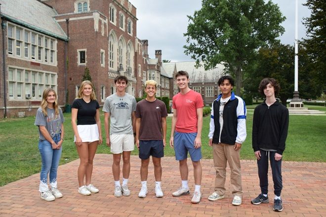 Pictured: Kailee Fino, Linnea Hentschel, John Toal, Dimitri Hanjis, Robert Brown, Austin Waggoner and Sean Jaquette. Not pictured: Ian Acharjee. Photo courtesy of the Bronxville Union Free School District