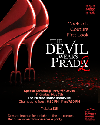 May 7, 2026, 6:30 PM Champagne Toast and 7:30 Screening: Cocktails. Couture. First Look. Special Screening Party of the Devil Wears Prada 2 at the Picture House Bronxville. Step onto the red carpet, strike a pose at our step-and-repeat, and come dressed to the nines for a night of fashion, fun, and film. Enjoy prosecco and light bites before the screening—and don’t miss a curated pop-up, perfect for discovering your own runway-worthy look.Tickets: $25 — includes the full experience Ticket Link: HERE