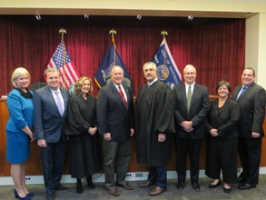 Pictured here (L to R):  Town Clerk Linda Laird, Councilman Glenn Bellitto, Judge Janet Calano, Supervisor Anthony S. Colavita, Judge Fred Salanitro, Councilman Joe Dooley, Councilwoman Theresa Nicholson, and Receiver of Taxes Rocco Cacciola.