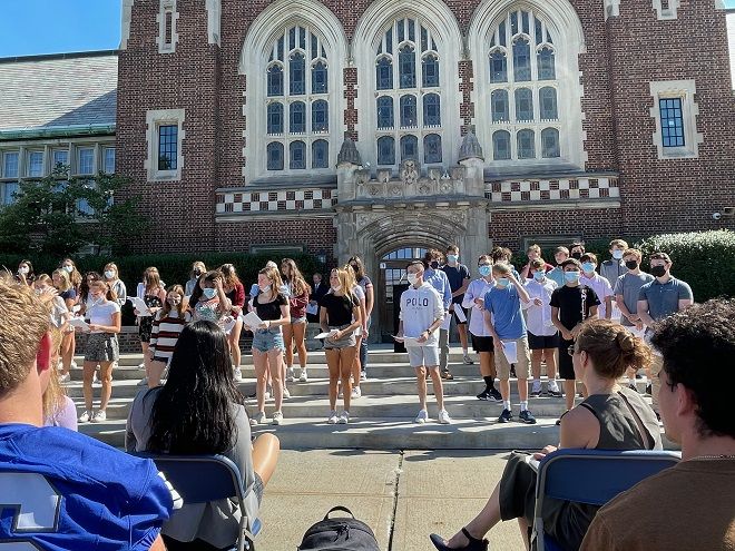 Bronxville High School students gathered on the school’s front lawn. Photo courtesy the Bronxville School
