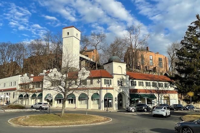 Pictured above is the Gramatan Arcade and Tower, which is perhaps Bronxville's most well-known historic landmark, and is a reminder of the grand 1905 Hotel Gramatan that dominated the hilltop and drew an international clientele to the village. The lower shopping arcade, facing Pondfield Road on the back side of the hotel, was a small, domed entry structure with a single room on either side.
