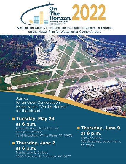 May 17, 2022: The Board of Legislators fully supports County Executive George Latimer’s reintroduction of a community engagement program, On the Horizon, to hear from the public on the future of Westchester County Airport.