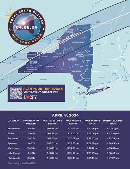 Ongoing: Tuckahoe Youth Association TYA Spring Baseball: Opening Day is Sat. April 13th. Tuckahoe, Eastchester, Bronxville Boys & Girls Ages 4-12. Click here to Register for Spring BaseballAccording to Governor Hochul, the eclipse “will encompass 29 counties in the western and northern parts of New York State.” The photo below shows the path of the total eclipse in New York State.