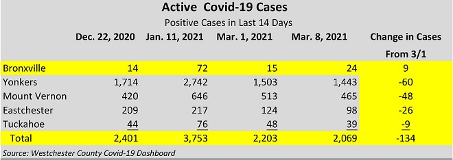 Additionally, as of March 9, 2021, a total of 1.9 million New Yorkers had been fully vaccinated. This includes 11,094 in Westchester.