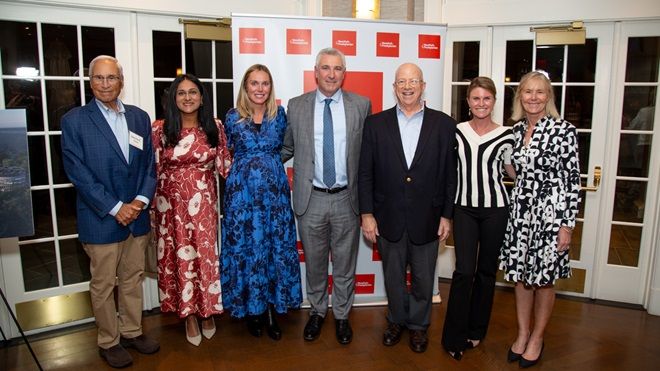 Pictured (L-R): Dennis Glazer; Dr. Susan Thomas Raju; Christina Skinner; Paul Dunphey, Richard Dresdale, Michelle Antonini; and Mary Taylor Behrens