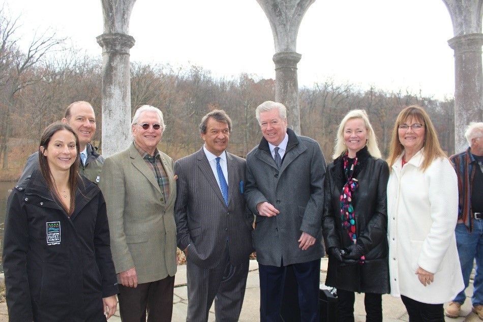 The ceremony took place directly in front of the Romanesque structure, which boasts nine elegant arches and is 16 feet tall from the platform, 20 feet above the water. The project was identified as a priority by Westchester Parks Foundation during the last decade, as the project perfectly encompasses the organization’s mission to enhance and invest in the preservation of Westchester County Parks. Walter Sedovic Architects, based in Irvington, is the architecture firm chosen for the project.