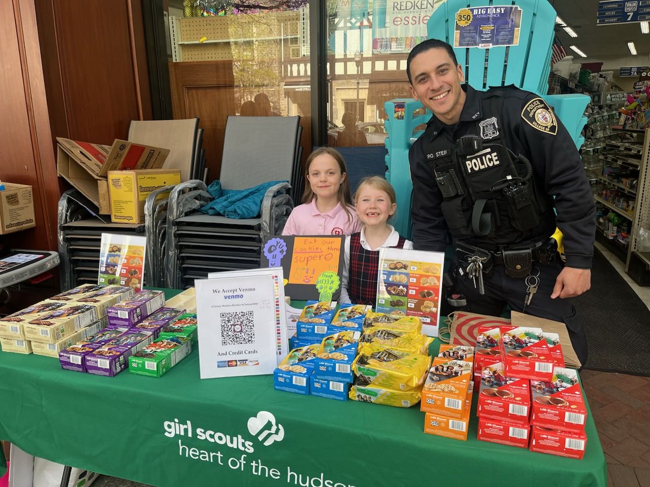 This afternoon he stopped to talk to a group of Girl Scouts selling cookies.