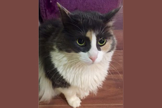 Jun. 22, 2016: Starburst is a lovely pastel calico with stunning markings. This long-haired beauty is three years old and gets along with kids, cats, and dogs.