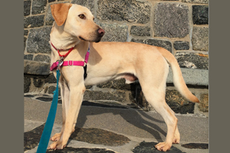 Skip gets along with all of the dogs and cats in his foster home, and, at only 35 pounds, he is the perfect medium-sized pet. This playful pooch is housebroken, shares his doggie treats, and sleeps perfectly through the night in his dog bed.