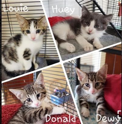 Sep. 23, 2020: Huey, Dewy, Louie and Donald are brothers that were found as newborn kittens living in a local families backyard.