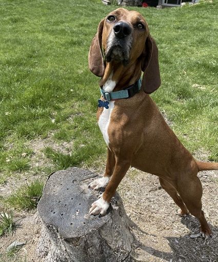 July 14, 2021: Penny is a loving and lively two-year-old Redbone Coonhound mix with a beautiful deep red coat, soulful eyes, and a joyful disposition. She may look serious to you, but Penny is all about having fun.