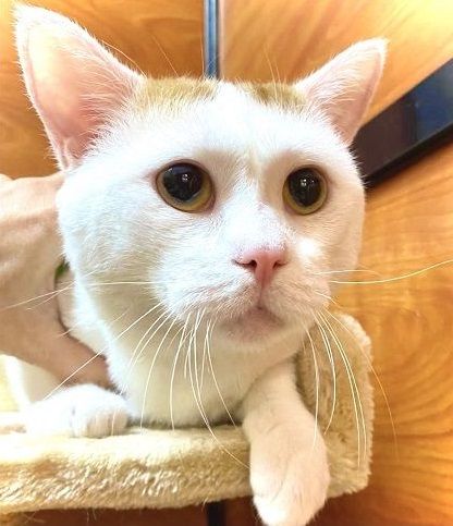 Hutch is primarily white with a few patches of tan on his head and tail. He is friendly, docile, and gets along well with other sweet and non dominant kitties. Hutch is excellent with children and would thrive in a home with a kind, caring, and patient owner.