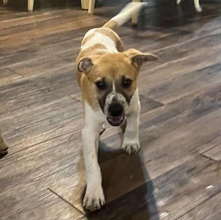 He is estimated to be 45-50 lbs. once fully grown. Leroy is always the life of the party, and he is such a spunky and silly pup. He is super social, loves everyone he meets, and shows how much he loves you by giving tons of puppy kisses.