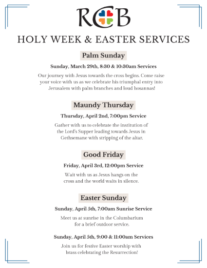 Reformed Church Bronxville: Link to Easter Service Schedule