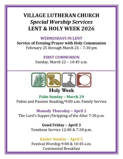 Village Lutheran Church: Link to Easter Service Schedule