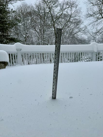 See photos below of rulers in the snow: Unofficial snow measurements by staff (first photo) and a reader (second photo)