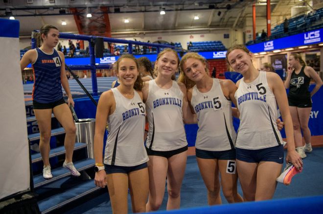 Bronxville girls’ 4x400m relay team at the Sectional Championships. Photo by Angel Tomala-Reidel.