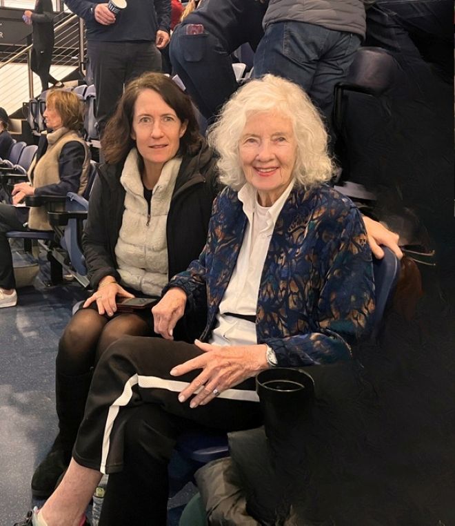 Molly's mother, Sheila Stoltz (left), and grandmother Emelda Morrissey (right) enjoyed watching Molly play this weekend. Emelda has been watching squash matches since 1981, when her daughter Sheila was playing for Phillips Exeter. Sheila subsequently played for Harvard College.