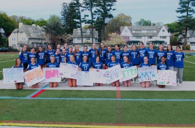 The celebration was filled with great energy and emotion from the start, as Bronxville teammates presented hand-made posters to each of the seniors before they were announced and honored on the field with flowers alongside their parents.