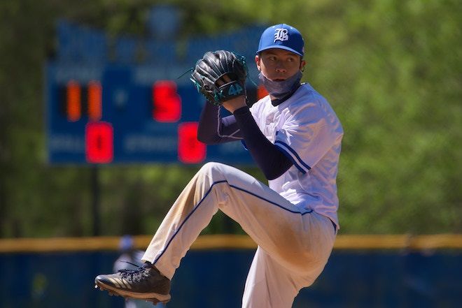 Spencer Dessart on the mound in the game against Blind Brook. Photo by David Fenner.
