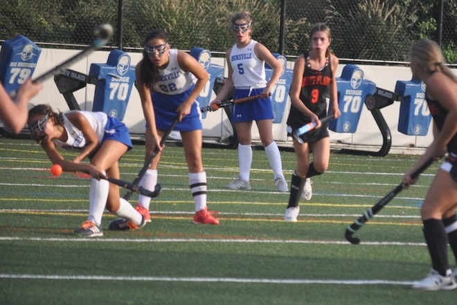 The girls’ field hockey team in Monday’s win over White Plains. Photo by J. Murrer.