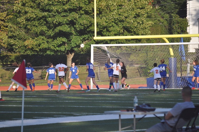 Goalkeeper Milly Koenig helps in the shutout against Croton last week. Photo by J. Murrer.