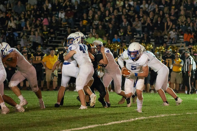 The Broncos in the game against Nanuet on September 18th. Photo by David Fenner.
