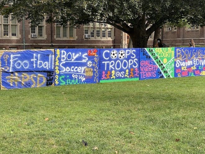 Homecoming banners on the front lawn of the Bronxville School. Photo by J. Murrer.