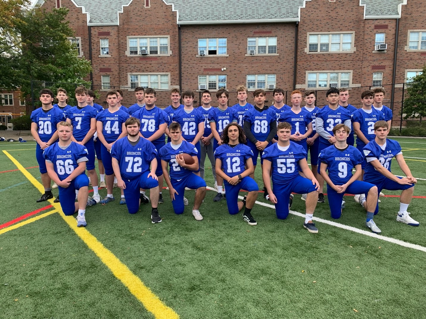 After having last week’s game cancelled because of a Putnam Valley COVID pause, the football team returned this week to play in the Class B Sectional Quarterfinals. The Broncos had homefield advantage in the game against Ardsley and took a 14-0 lead in the first quarter. Quarterback Conor O’Neil scored on a 27-yd run on the opening drive, and Tommy Garofalo ran through a pack of Panthers for the second Bronxville score. Without a kicker, the Broncos depend on the two-point conversion and after Garofalo's touchdown, Aidan McBride completed the two-point conversion to give the Broncos the 14-0 lead.