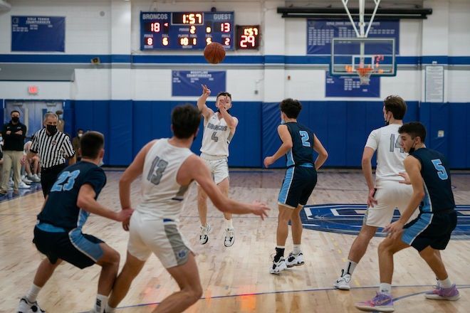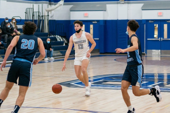 March 2, 2022: The Bronxville boys’ basketball team advanced to the Class B Sectional Semifinals with a solid 54-42 victory over Putnam Valley on Saturday with scoring from Chris Kelty (17pts), Teddy Dolan (11), and Sean McGrath (11). The Broncos are the number one seed in Class B and will face No. 4 Edgemont today at home at 6:30. Edgemont earned a spot in the semifinal game with a 56-43 win over Rye Neck. Tonight’s game can be viewed at https://events.locallive.tv/school/bronxville-hs.