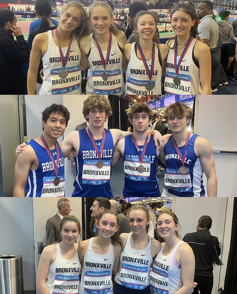 The Broncos sent three relay teams to the prestigious Millrose Games this past weekend. Competing at The Armory against Suburban High Schools, the Bronxville girls’ 4x400m relay team, Juliet Winiecki, Mai Ly Reinking, Kara Kochansky, and Danielle Dragoni, placed second after running a seven-second personal best time of 3:58.60. They are currently ranked No. 1 in New York.