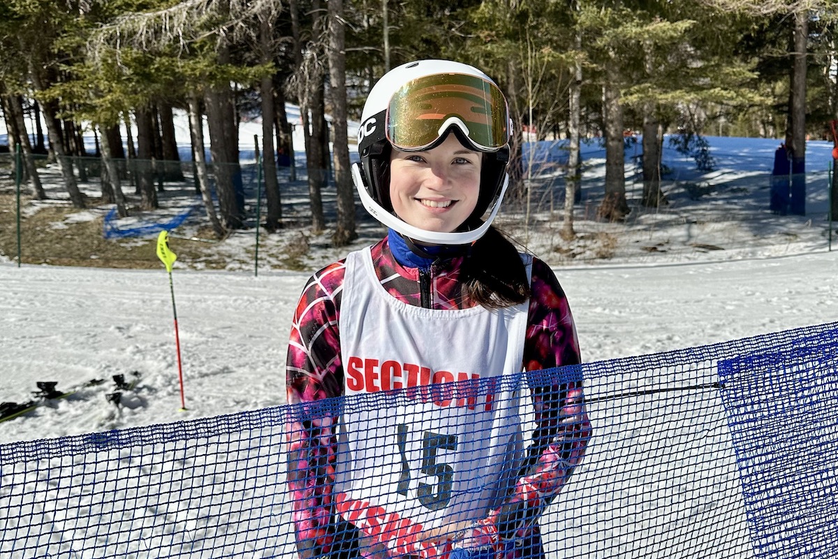 It was the third sectional meet for sophomore Lucy Sevin who first qualified for Sectionals as a 7th grader. This year, she placed 5th in the slalom and 22th in the giant slalom finishing 13th overall in field of 60 racers.