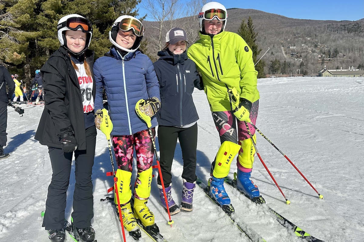 Bronxville skiers at Sectionals (l to r): Stella Wooley, Lucy Sevin, Annie Sevin, and Brooke Thompson. Photo by M. Sevin.