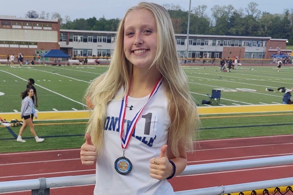 Colette Ungvary placed 2nd in the pentathlon at the Westchester County Championships. Photo courtesy of @bxvboystrack.
