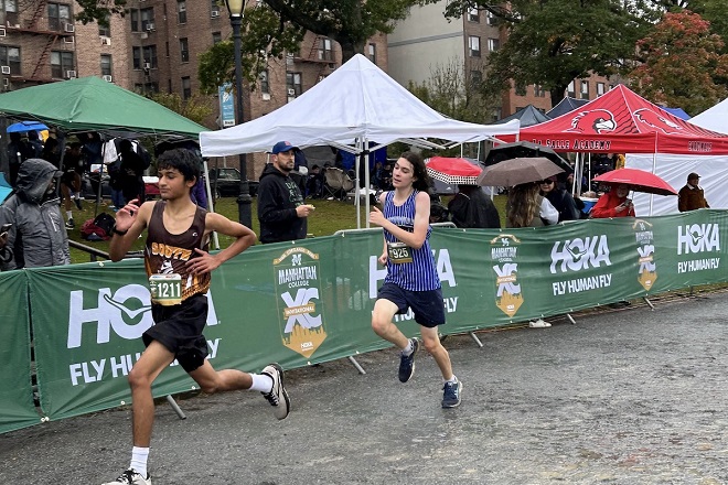 Oct. 18, 2023: On yet another rainy Saturday, the Bronxville cross country teams headed to Van Cortlandt Park to compete at the Manhattan Invitational, the largest cross country meet in the U.S. There were over 180 teams at the meet, mostly from the Northeast, but some came from as far away as Florida and California.