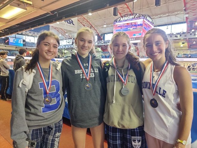 The Bronxville girls’ team placed first at the League 3B Championship with 188 points followed by Hastings with 100 and Albertus Magnus with 68. At Counties, the Broncos won the Class C title with 90 points with Hastings placing second (63) and Pleasantville third (59).