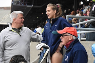 Pictured here: Kaitlin Ryan at the Penn Relays last week with her father, David Ryan, and Coach Jim Mitchell.