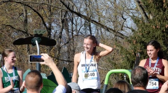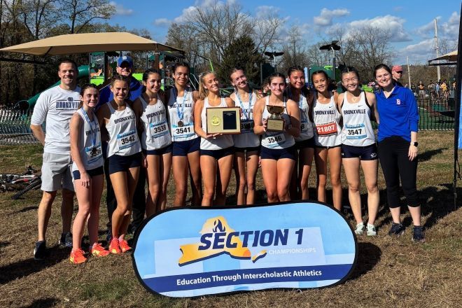 Nov. 11, 2025: The Bronxville girls’ cross country team had a decisive win at the Class C Sectional Championship at Bowdoin Park in Wappingers Falls on Saturday. The Broncos scored 28 points and their closest competitor, Pleasantville, scored 47.