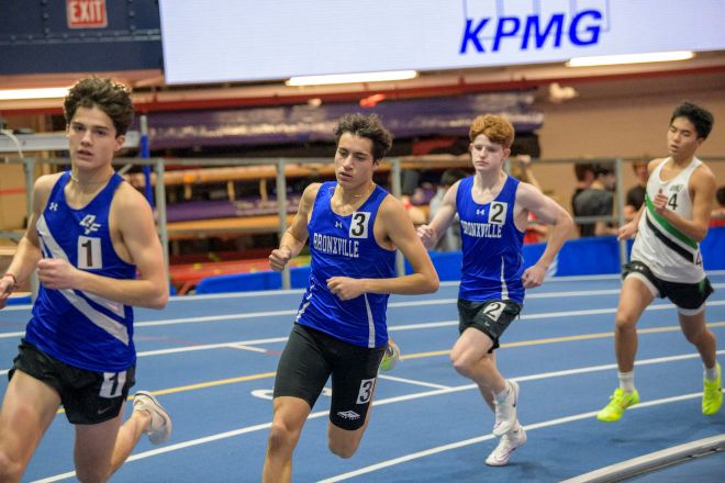 Jan. 21, 2026: The Bronxville boys’ indoor track and field team at the League Championship in mid-January. Photo by A. Tomala-Reidel.