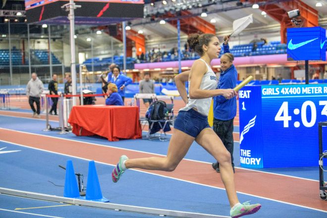 4x400m relay: Jesse O’Gorman, Siena Angelani, Emerson Dennis, Sophia Petrillo, 2nd, 4:34.44